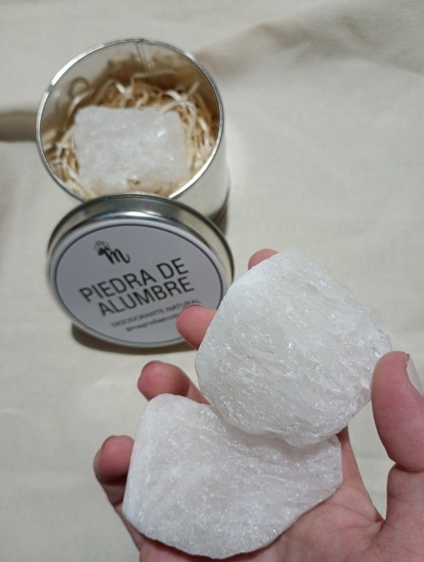 Su aspecto es el de una piedra semitransparente y de color blanquecino que cuenta con muchos usos y beneficios, desde desodorante hasta cicatrizante, pasando por la limpieza de tejidos.